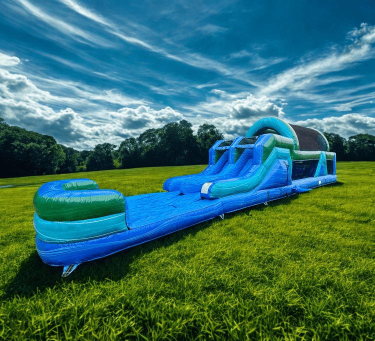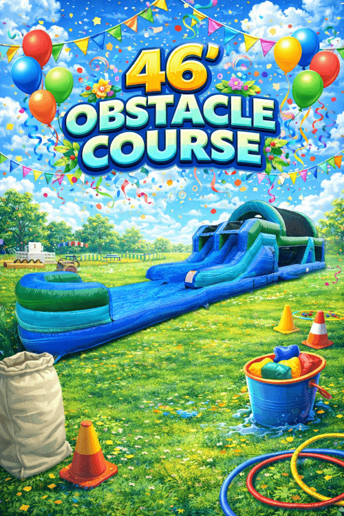 Race, climb, crawl, and slide through 46 feet of nonstop fun! This obstacle course can be used wet or dry, making it perfect for any season. Great for parties, school events, and anyone ready for a fast paced challenge!