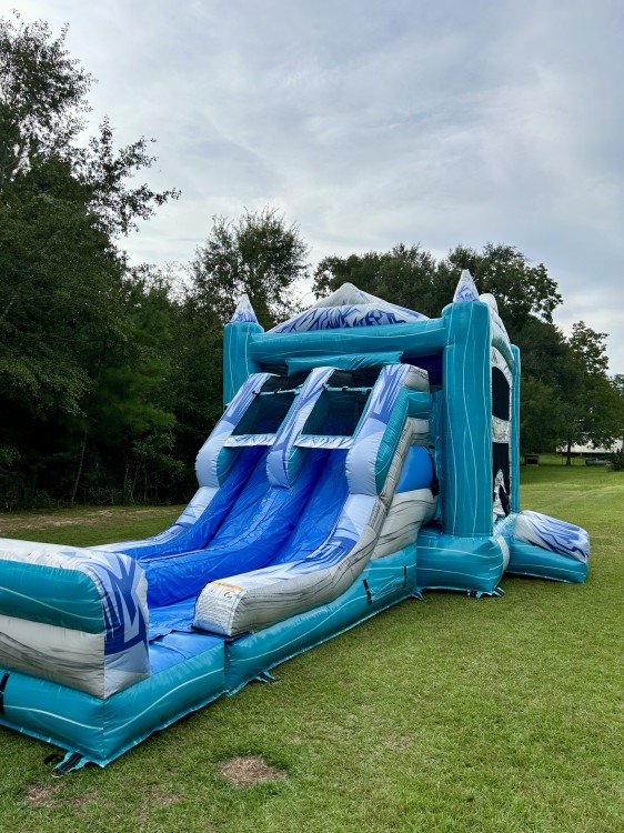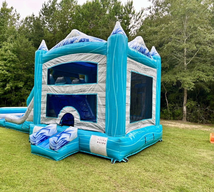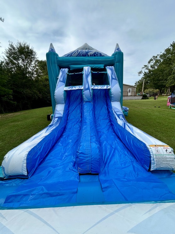 Cool down the fun with our Glacier Freeze combo! This icy-themed inflatable features a roomy bounce area, climb wall, and a dual lane slide. Perfect for beating the heat and adding a burst of frozen adventure to any party or event.