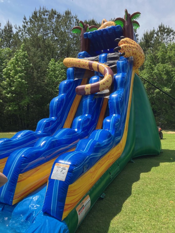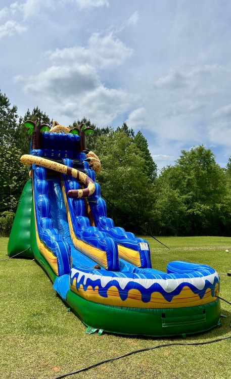 Unleash the adventure with our 19 foot Hidden Jaguar! With bold jungle vibes and a smooth, fast ride, this slide brings wild excitement to any party. Perfect for kids who want a thrilling splash with a tropical twist!